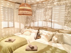 リビングダイニング、寝室3部屋、ダブルベッド6台、フルキッチン、IHクッキングヒーター、冷蔵庫、電子レンジ、オーブントースター、炊飯ジャー、電気ポット、調理器具、食器一式、洗濯機、乾燥機、掃除機、ヘアドライヤー、お子様用椅子、ベビーベッド、ベビーマット、ベビーテント、プロジェクター、スピーカー、無料Wi-Fi、ウェルカムコーヒー、駐車場最大4台